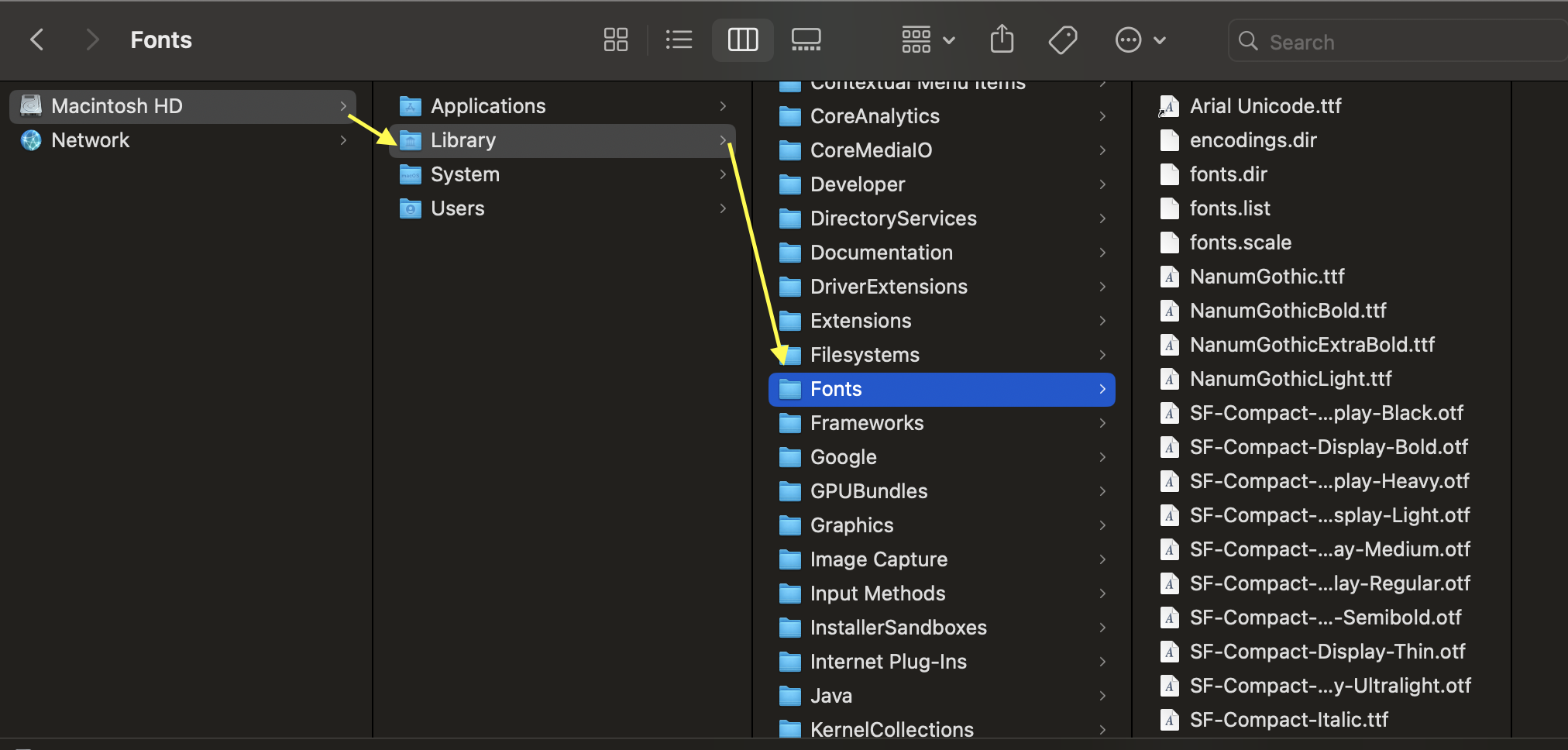 나눔 글꼴이 맥북에는 없나보다. 설치하자.