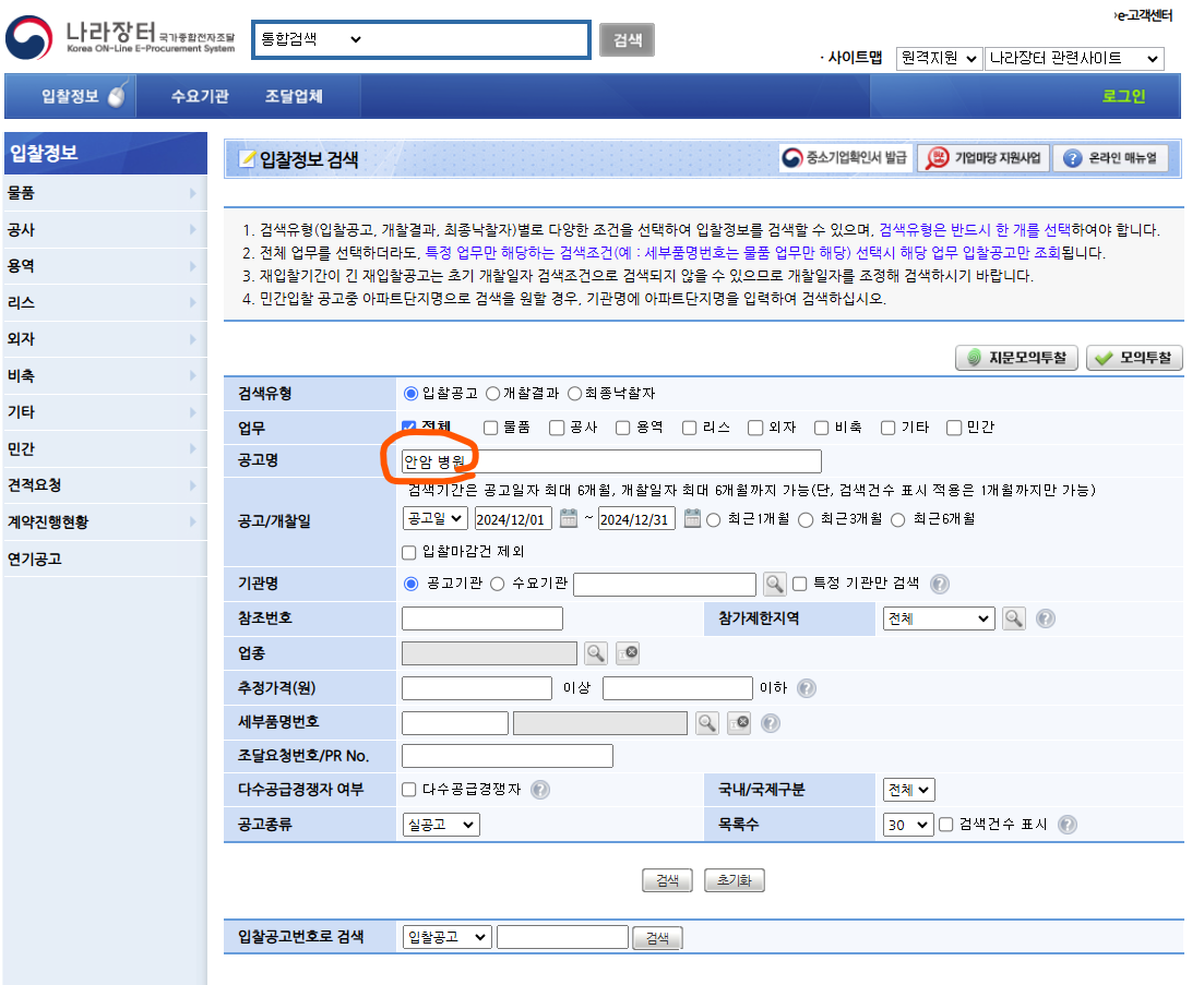 💻 입찰 공고 명 검색 > 공고 선택 > 공고 확인