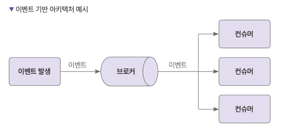 - 프로듀서(이벤트 발생), 중개인(이벤트 전달), 컨슈머(이벤트 받음)