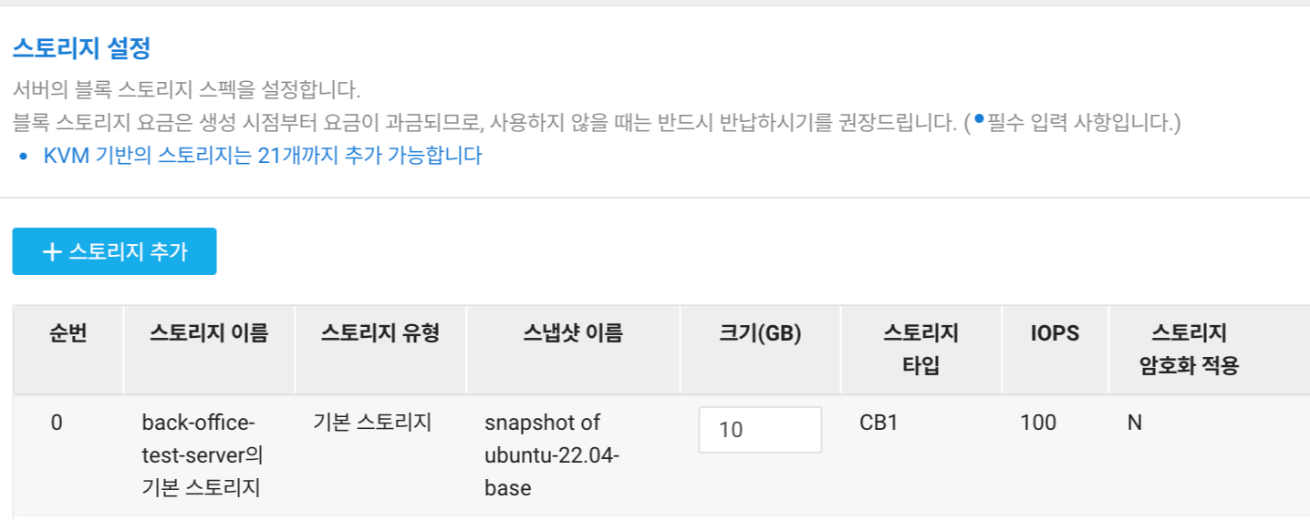 - 스토리지 설정 ( 10GB 이하는 무료 임 )