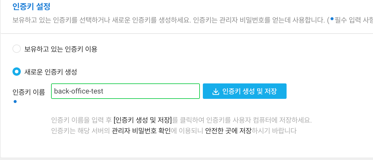 - 인증키 설정 -> 다운 -> 관리 폴더에 보관