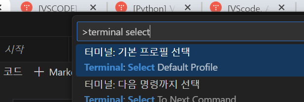 1. VScode 의 terminal 이 power shell 로 설정 됨.