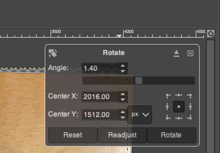 Image tap -> Transform -> Arbitrary Rotation ->Angle setting -> Rotate 버튼 클릭
