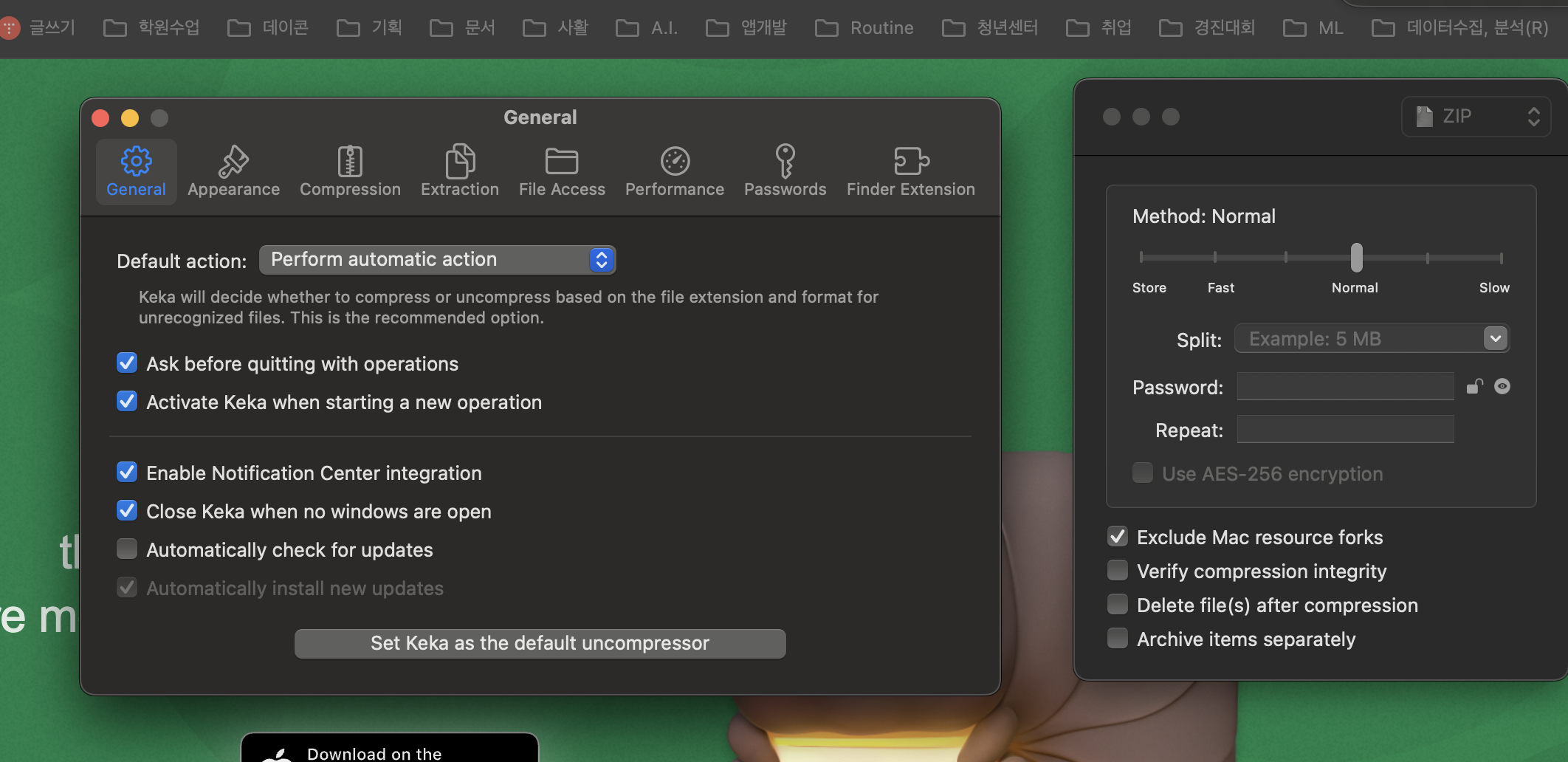keka 설치 후 화면에 압축할 폴더를 당겨서 넣는다.