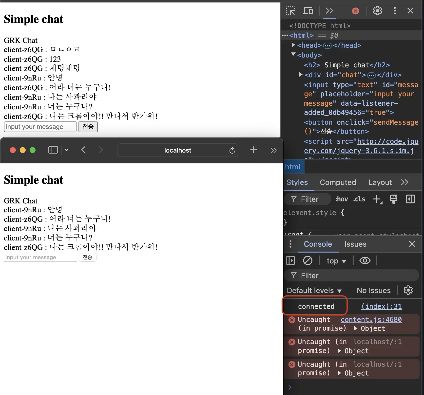 - 표준 프로토콜에서 브라우저 자체 웹소켓 지원.