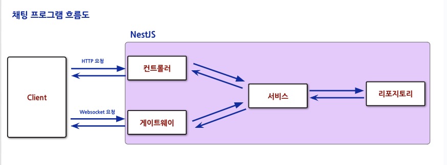 - 게이트 웨이 사용시 의존성주입, 데코레이터, 필터, 가드 등의 NestJS 기능을 사용가능,. 프로토콜이 http 라면 컨트롤러로 부터 요청을 받고 프로토콜이 ws 라면 게이트웨이로 부터 요청을 받음. 진입점의 차이가 다르며 사용한느 데코레이터가 달라짐.