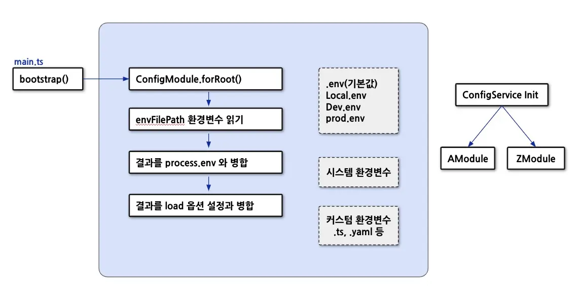 - NestJS 환경변수 설정은 ConfigModule 에서 할수있고 설정된 환경변수를 다른 모듈에서 가져다쓰려면 ConfigService 를 주입 받아 사용해야함.