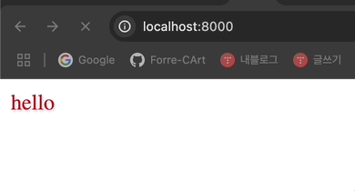 - 사용할 포트를 8000으로 지정함. ip 생략되엇으므로 기본값 localhost 혹은 127.0.0.1로 서버 접근 가능